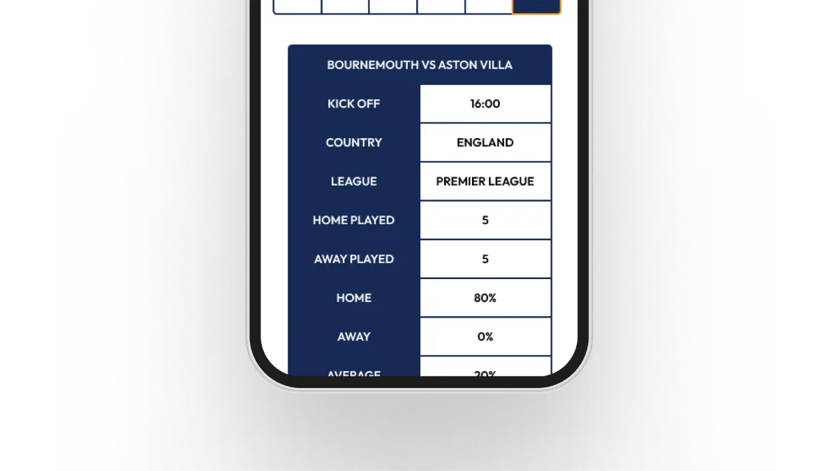 Forget spending hours digging through stats sites. Our custom calculator ranks matches from 60 European leagues based on the highest statistical chance of your chosen result, ready in just a couple of clicks.